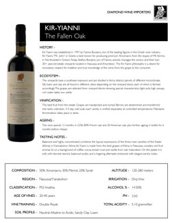 Balanced and highly concentrated, combines the typical expressions of the three main varieties of the Estate (Ktima) in Yiannakohori. Ktima Kir-Yianni is made from the best grapes of Ktima in Naoussa, complex red fruit aromas lie on a background of coffee, cocoa, bread crust and vanilla from oak maturation. On the palate it is soft, with discrete tannins, balanced acidity and a lingering aftertaste enhanced with elegant earthy notes.