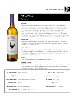 Bright lemon color with green highlights. Aromas of peach mastic, mango, and lemon along with those of white flowers and herbs. In the mouth the aromas continue with the same intensity and balance with its cool acidity. The aftertaste is fruity, herbal, and persistent.