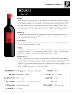 A one-of-a-kind wine that is made from sequent vintages of the Megas Oenos label that mature together in a special foudre (barrique). This is a type of Solera where we take out 400 lt of wine each year, which is bottled as Labyrinth and we top up the foudre with the Megas Oenos of the current vintage.