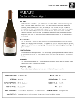 The soil of Santorini is unique; the whole island is a super volcano and has been covered with volcanic material since the last eruption in 1620 B.C. The vineyards are from one of the most historical viticulture regions in the world. The wine producing lineage of the island makes it part of the global historic legacy of grape cultivation.